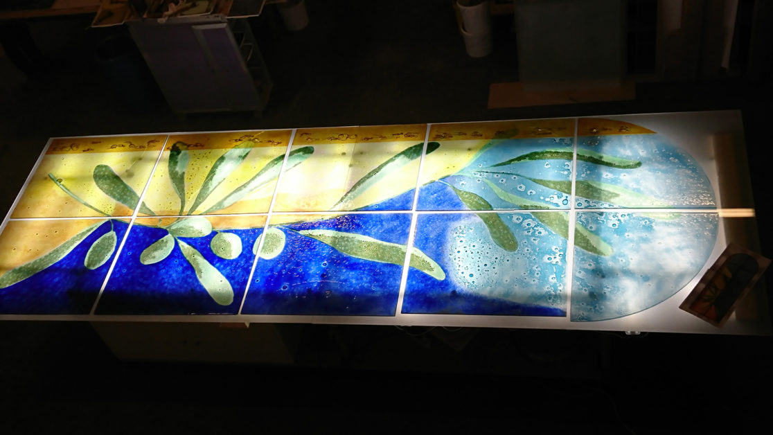 Dans son travail de création, le verrier Roland PFANN, alchimiste des couleurs, a fait le choix de privilégier deux couleurs :