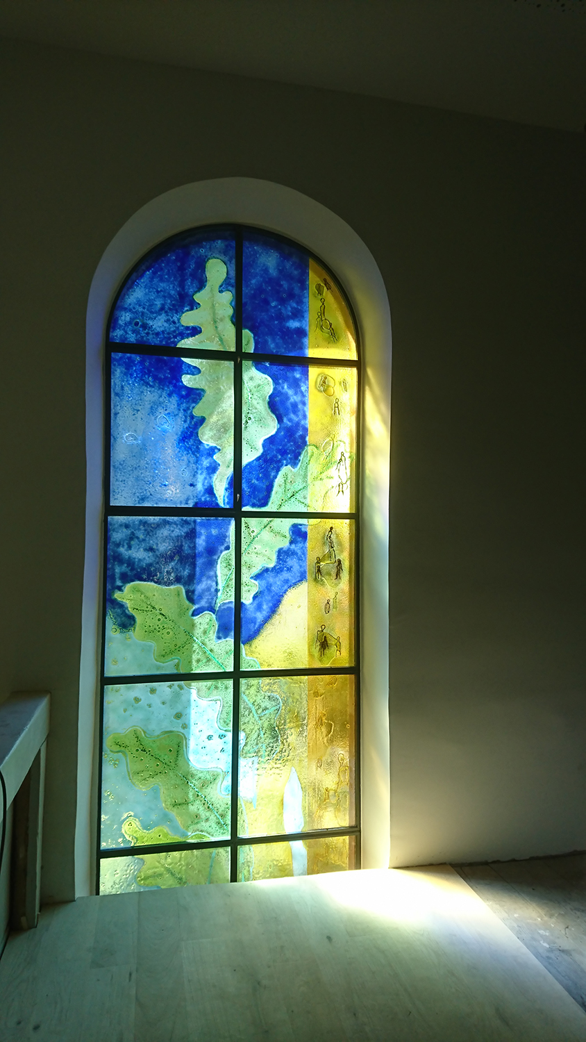Cette église disposait initialement de huit vitres simples en verre transparent.