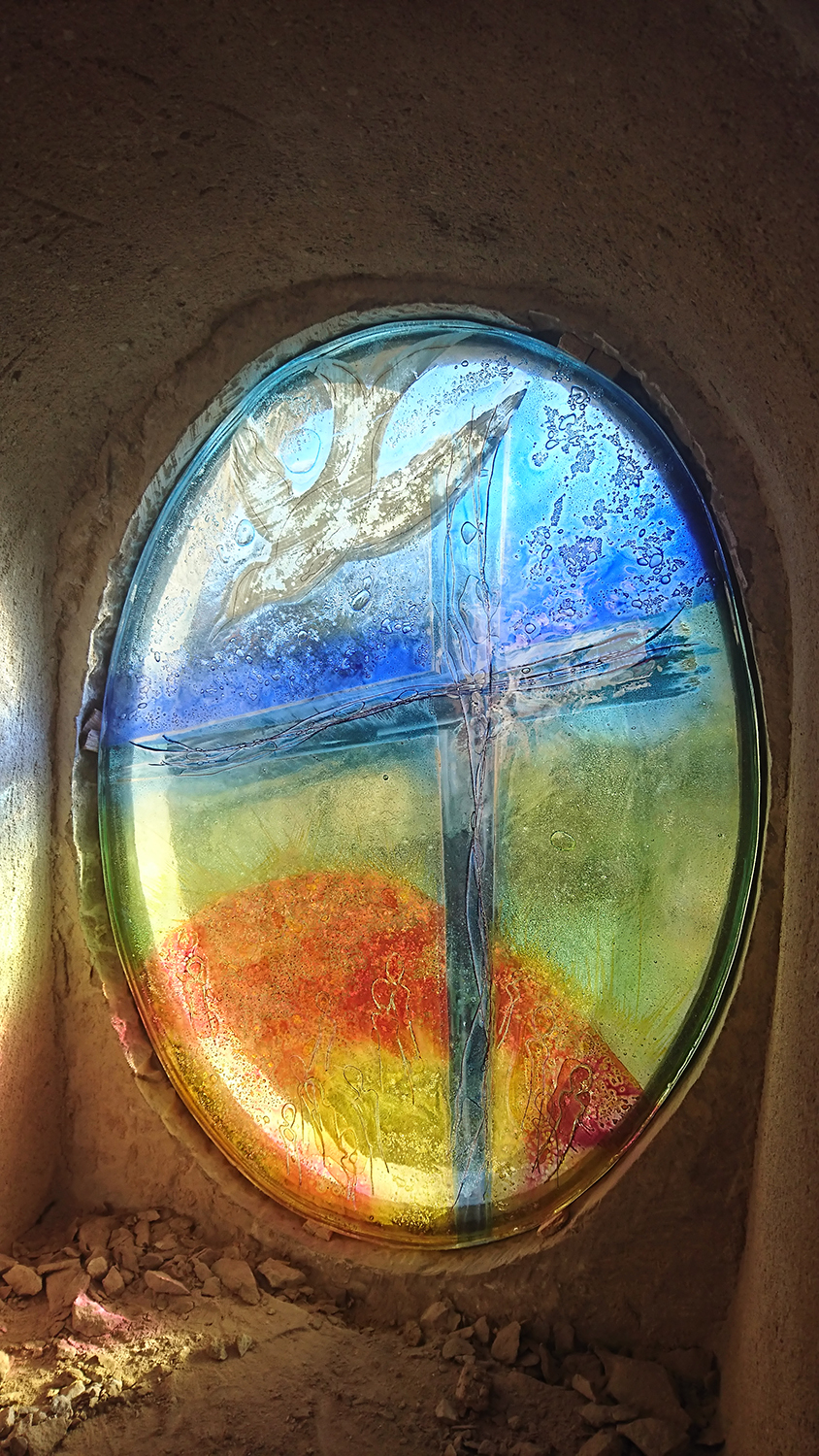 L’autre couleur présente dans chaque vitrail est le bleu, un beau bleu qui est la couleur du spirituel et du divin dans toutes les religions.