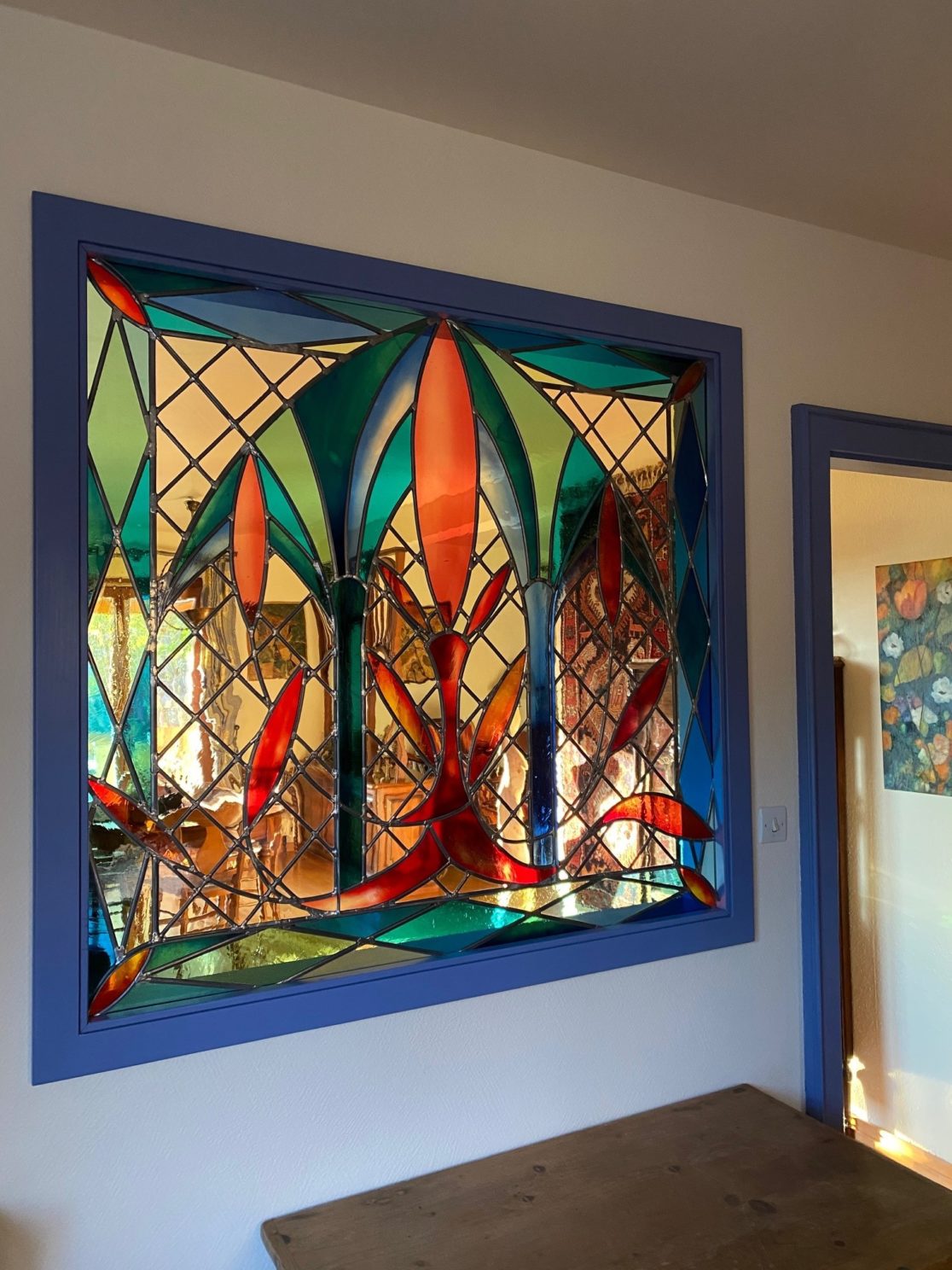 Roland Pfann propose sa sensibilité artistique à toute sorte de projets pour la restauration et la création de vitraux traditionnels ou contemporains, leur protection, la conception et la réalisation de décors en ou sur verre, la création de mobilier et d’objets d’art exclusifs, la recherche autour du verre