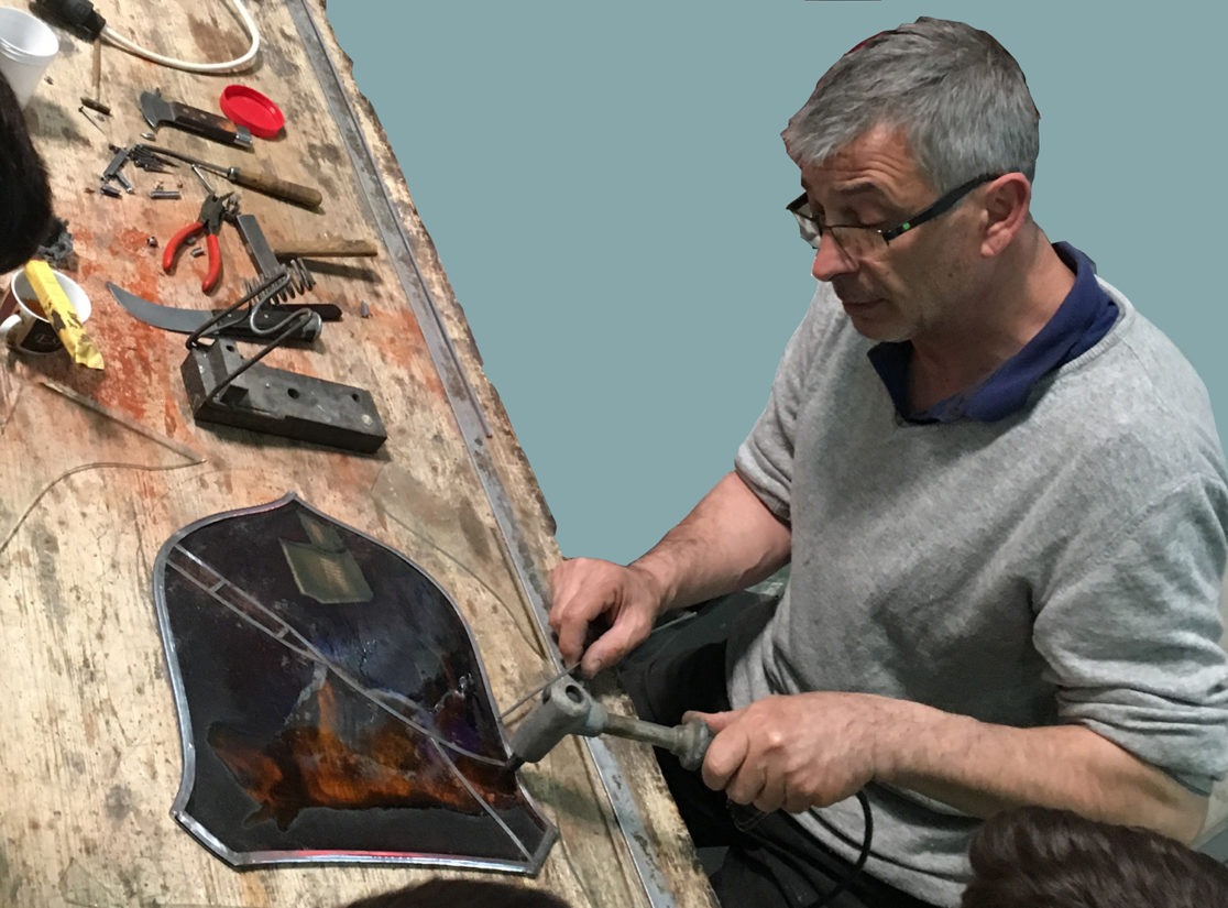 Roland Pfann propose sa sensibilité artistique à toute sorte de projets pour la restauration et la création de vitraux traditionnels ou contemporains, leur protection, la conception et la réalisation de décors en ou sur verre, la création de mobilier et d’objets d’art exclusifs, la recherche autour du verre…